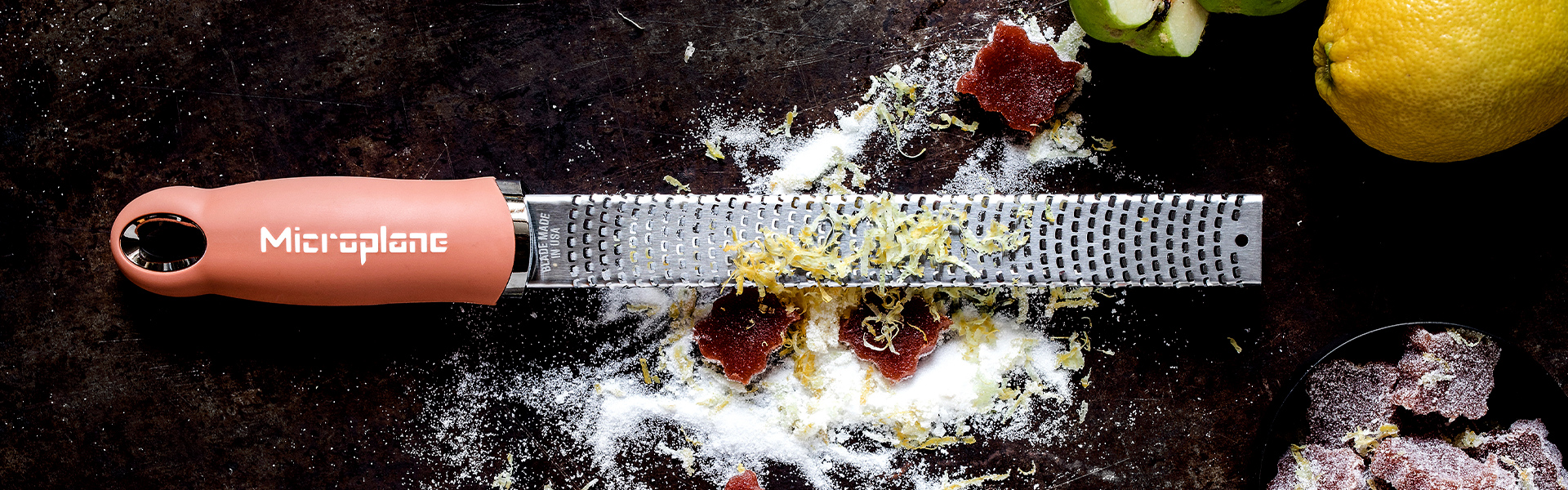 The history of Microplane: From the workshop to the kitchen… By now, cooking aficionados worldwide are familiar with the story: The big moment came in 1994, when a Canadian housewife was making an orange cake. Out of frustration that her grater was tearing and shredding, she commandeered one of her husband’s favorite woodworking tools from his workshop. The blade slid effortlessly across the orange and the zest fell from its surface like snowflakes.
